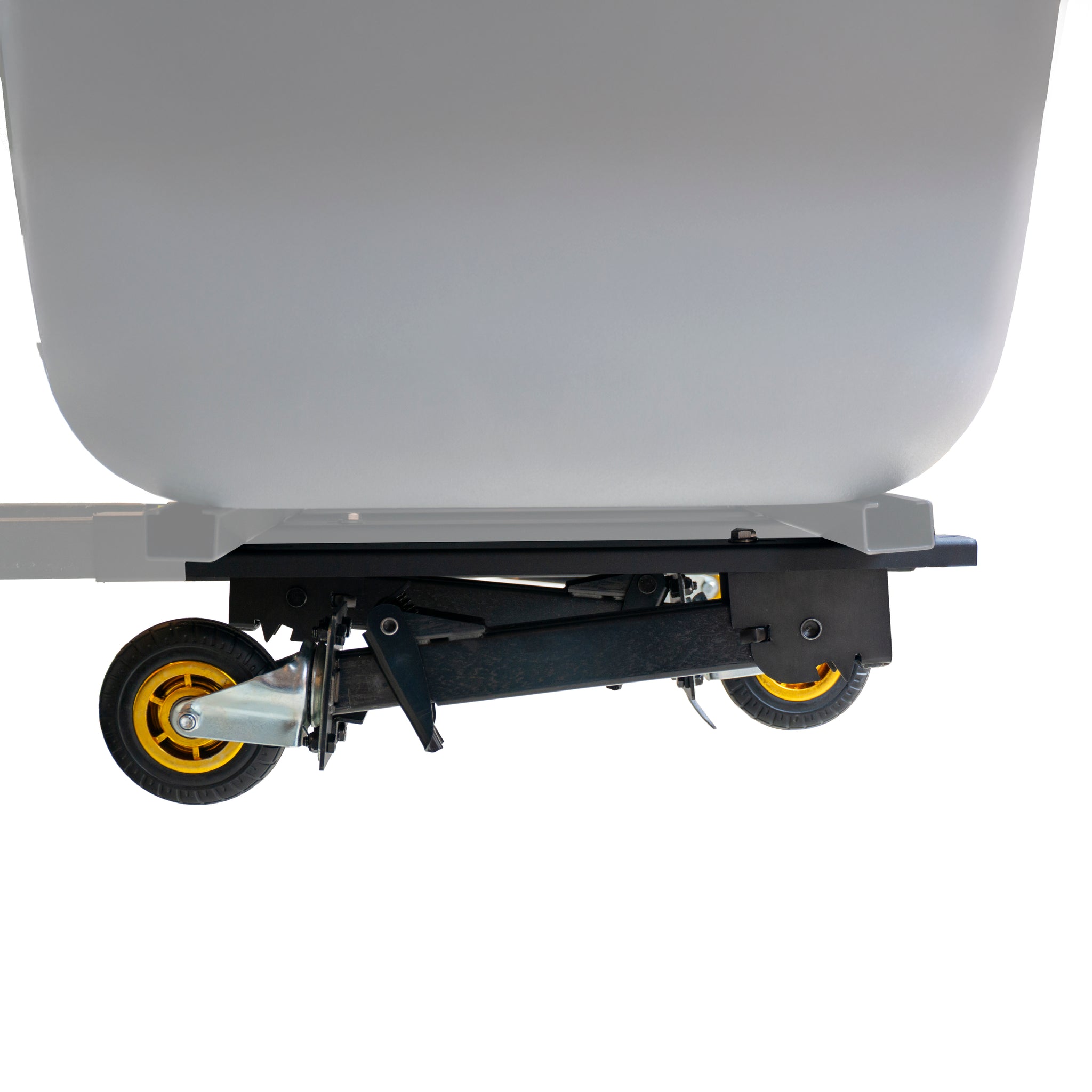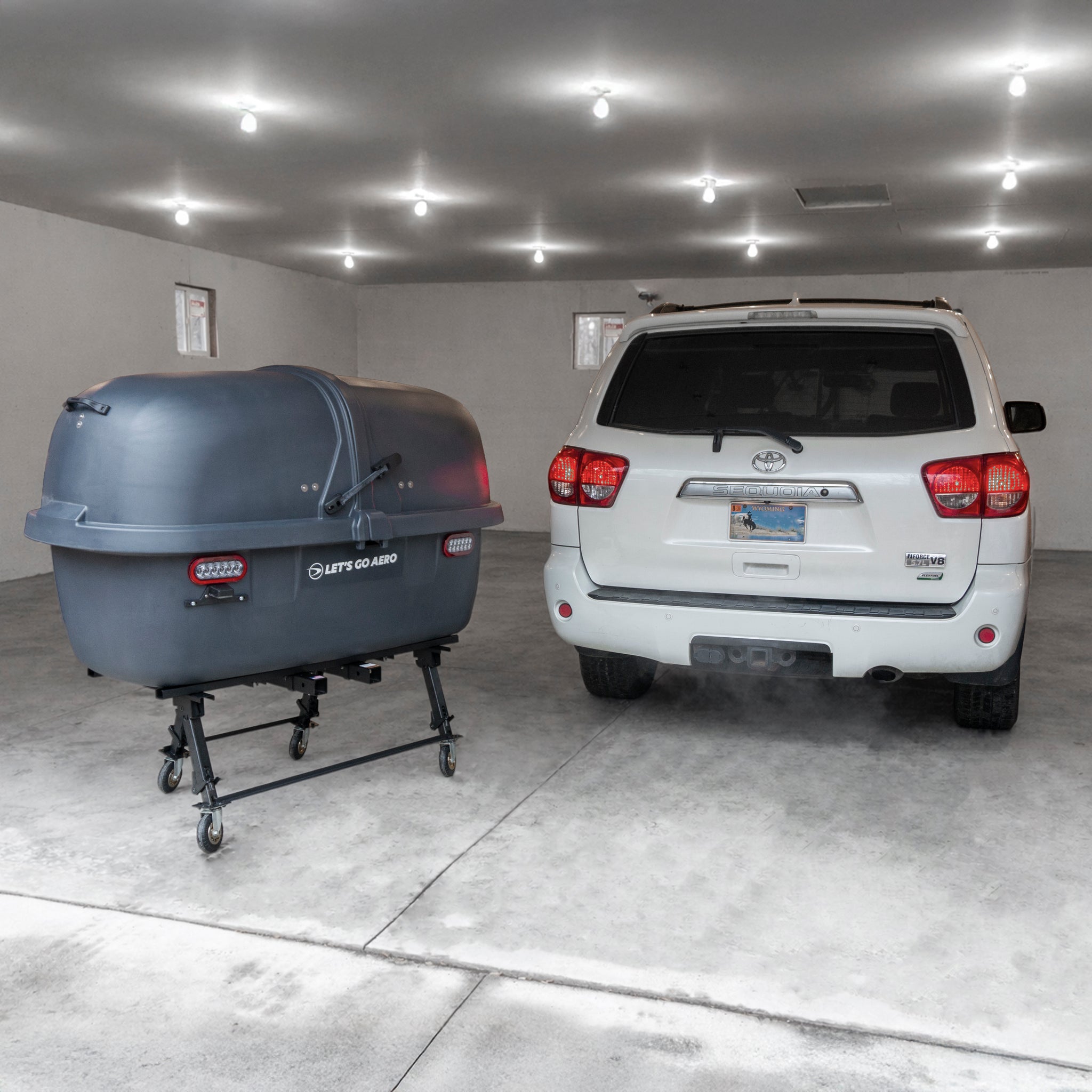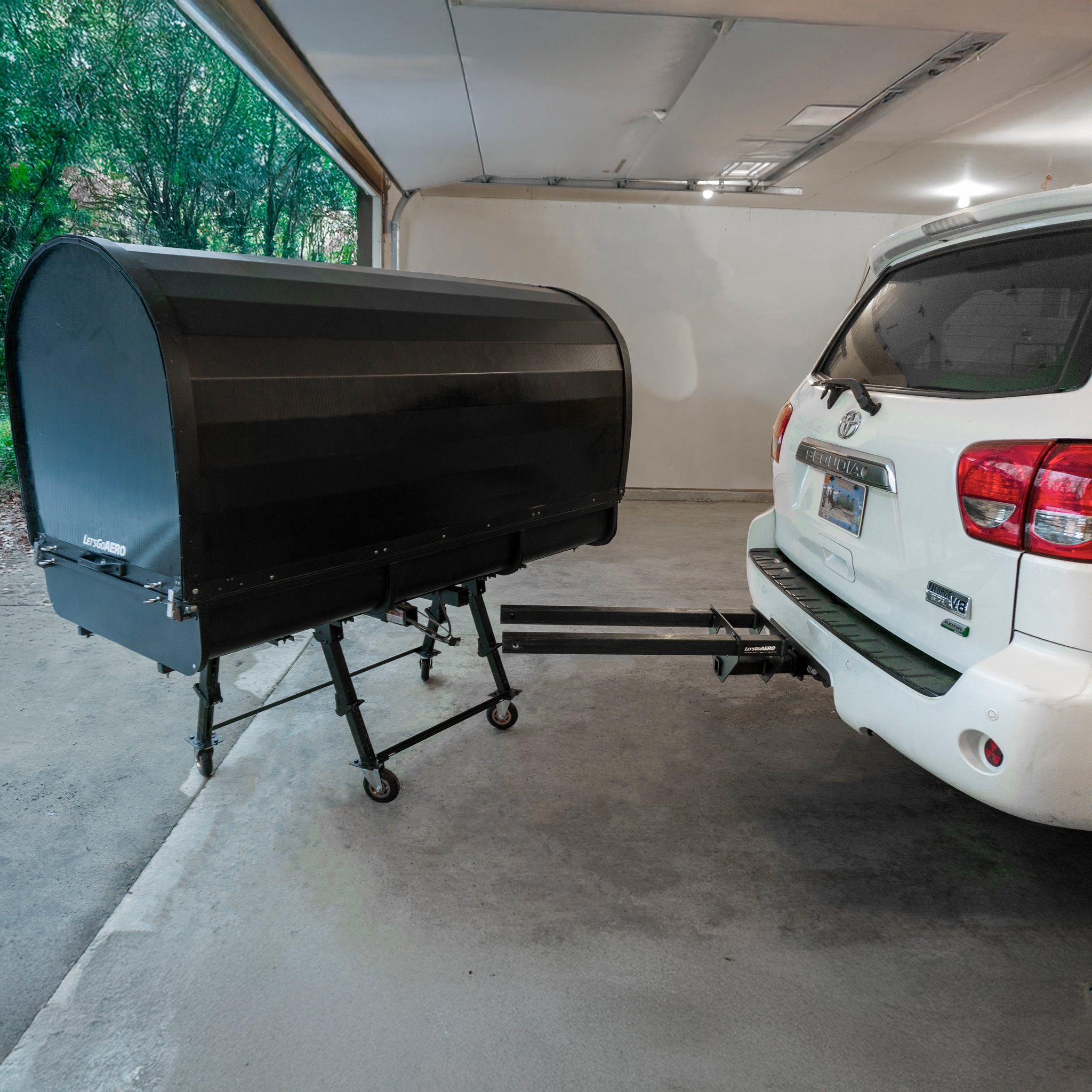 This accessory is a custom designed mobility aid for hitch installation, removal, and storage of Let’s Go Aero’s GearSpace®, GearDeck®, BlackBox and GearCage cargo carriers. The height adjustable and folding legs nest underneath the carrier for transit and are deployed with a secure catch and release mechanism for removal of the carrier from the hitch.