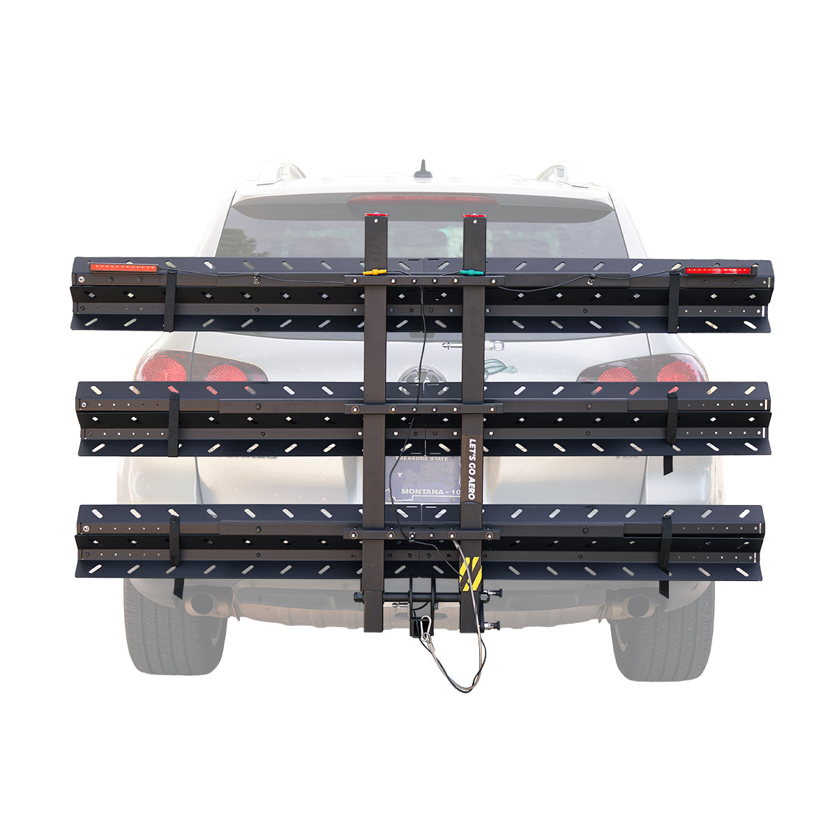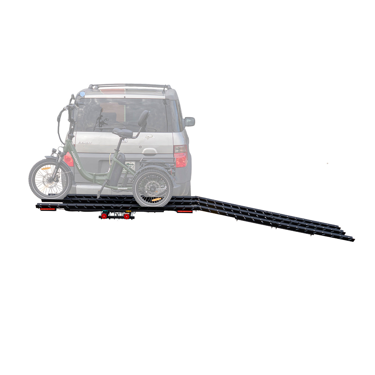 - LED taillights included for 45" rear rack length from hitch face DOT compliance; lights reposition to rearward facing when rack is folded up for night visibility